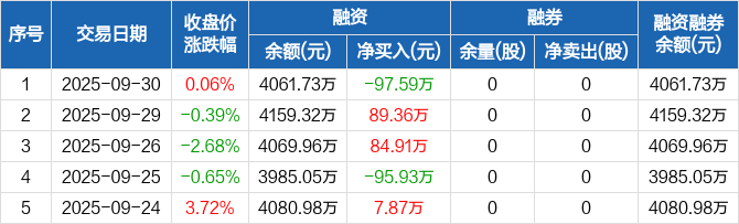 赛分科技:融资净偿还97.59万元,融资余额4061.73万元(09-30)