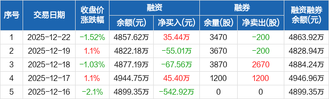 赛分科技:融资净买入35.44万元,融资余额4857.62万元(12-22)