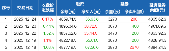 赛分科技:融资净偿还36.63万元,融资余额4859.71万元(12-24)