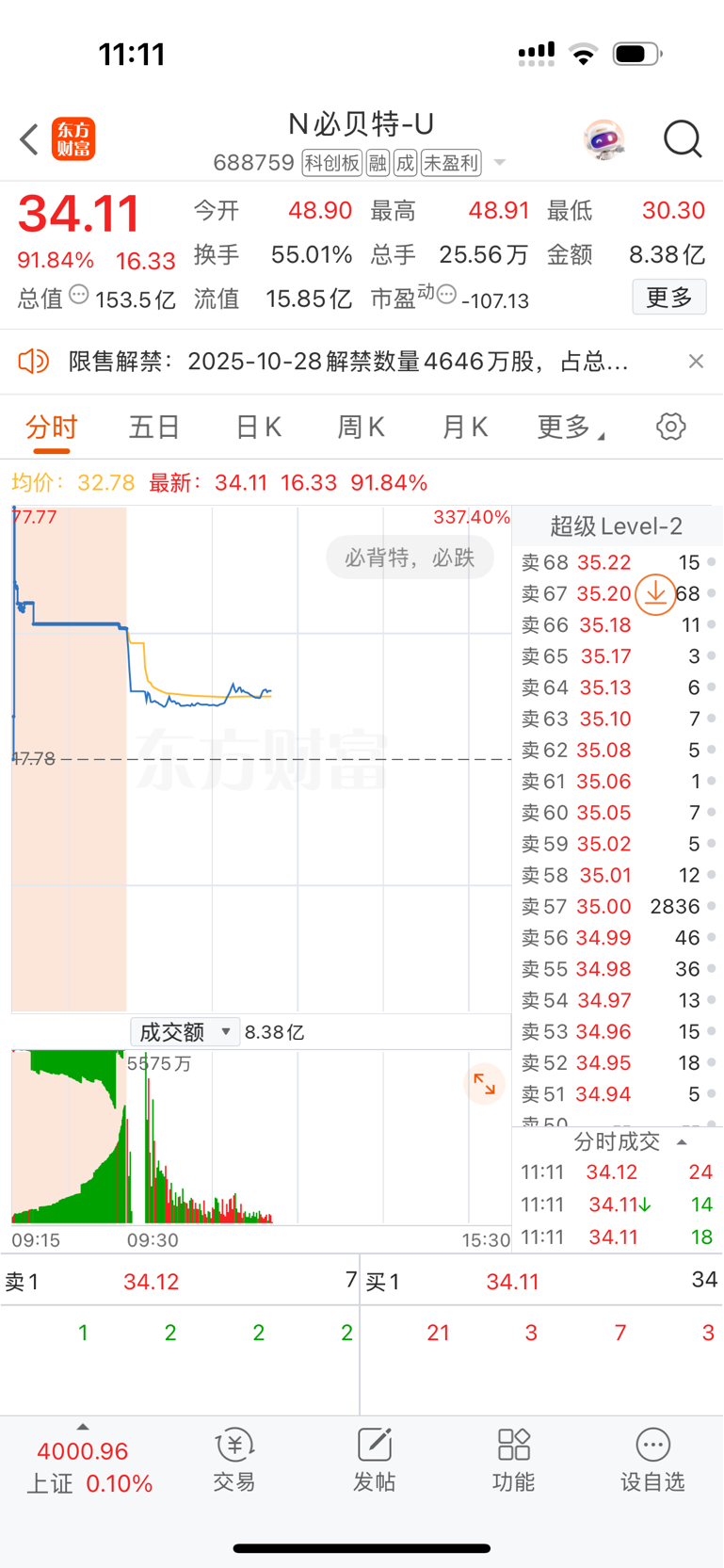 $N必贝特-U(SH688759)$ 要是破35 就能回到原点 涨到50