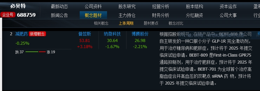 $C必贝特-U(SH688759)$ 常山药业500E市值都是减肥药必备特154E?并且必备特是高血脂BEBT-701 为全球首个治疗高脂血症合并高血压的双靶点 siRNA 药 物,预计将于 2025 年提交临床试验申请。全球唯一!