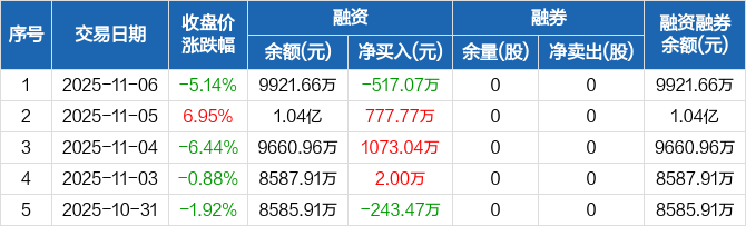 必贝特:融资净偿还517.07万元,融资余额9921.66万元(11-06)