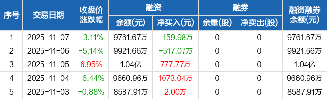 必贝特:融资净偿还159.98万元,融资余额9761.67万元(11-07)