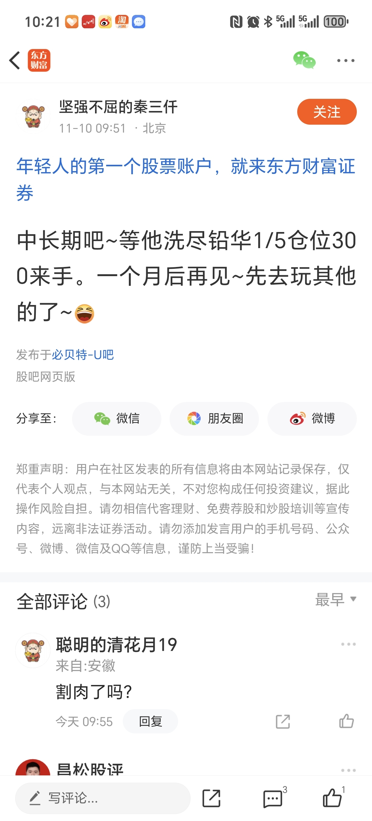 温馨提示: 1.根据《证券法》规定,禁止编造、传播虚假信息或者误导性信息,扰乱证券市场;2.用户在本社区发表的所有资料、言论等仅代表个人观点,与本网站立场无关,不对您构成任何投资建议。用户应基于自己的独立判断,自行决定证券投资并承担相应风险。《东方财富社区管理规定》