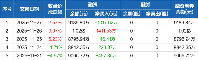 必贝特:融资净偿还1017.62万元,融资余额9189.84万元(11-27)