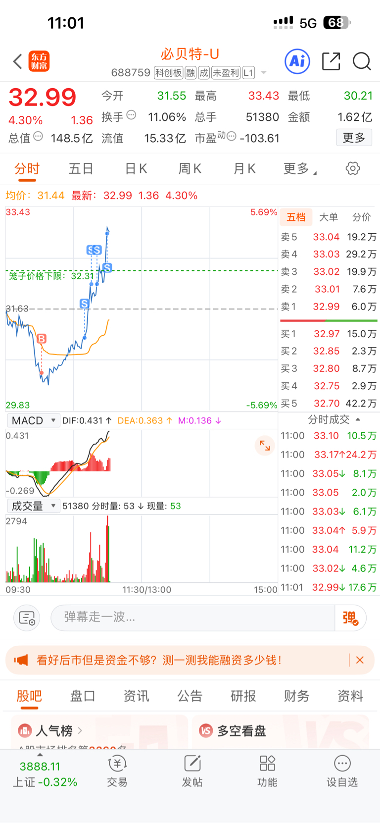 $必贝特-U(SH688759)$ 溜了,溜了,妈的玩心跳