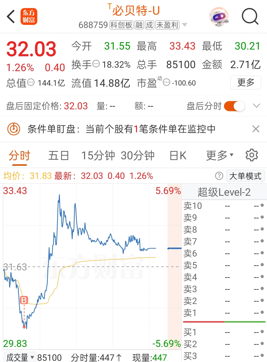 $必贝特-U(SH688759)$ 妥了,底仓建好了