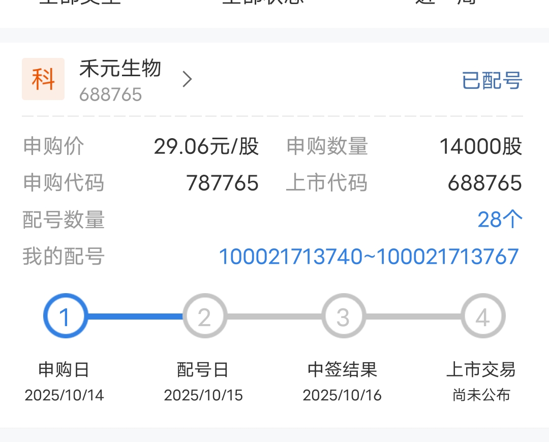 $禾元生物(SH688765)$ 科创版一次没中过,看我的号都没戏