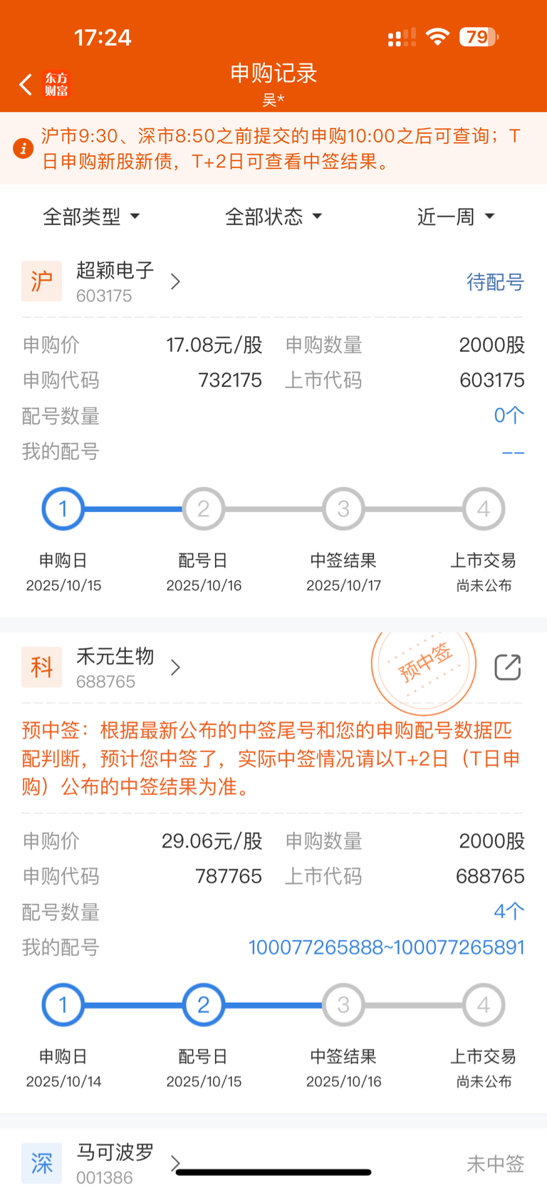 四个号竟然中签了,真是无心插柳
