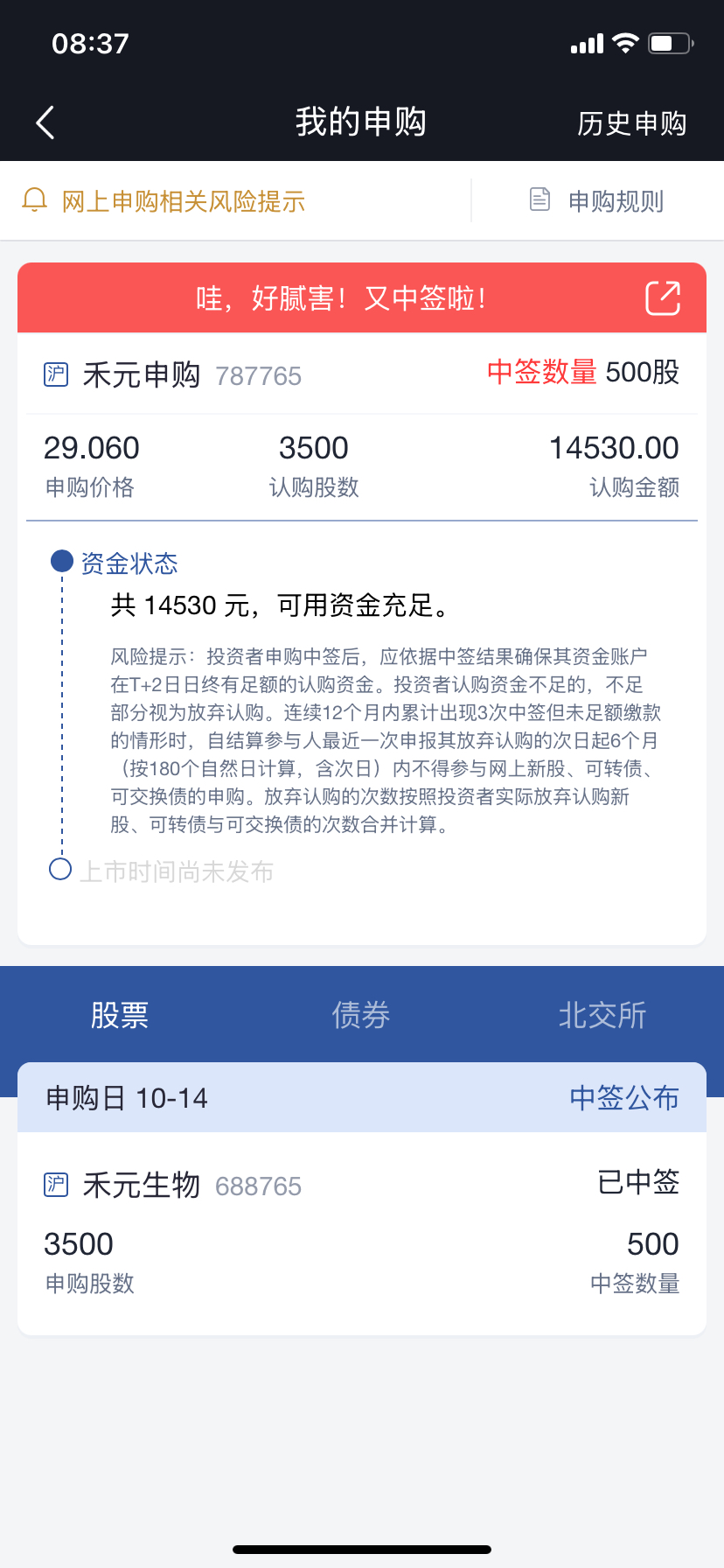 $禾元生物(SH688765)$ 今年第二签,上一次是华电新能,开盘能过百么