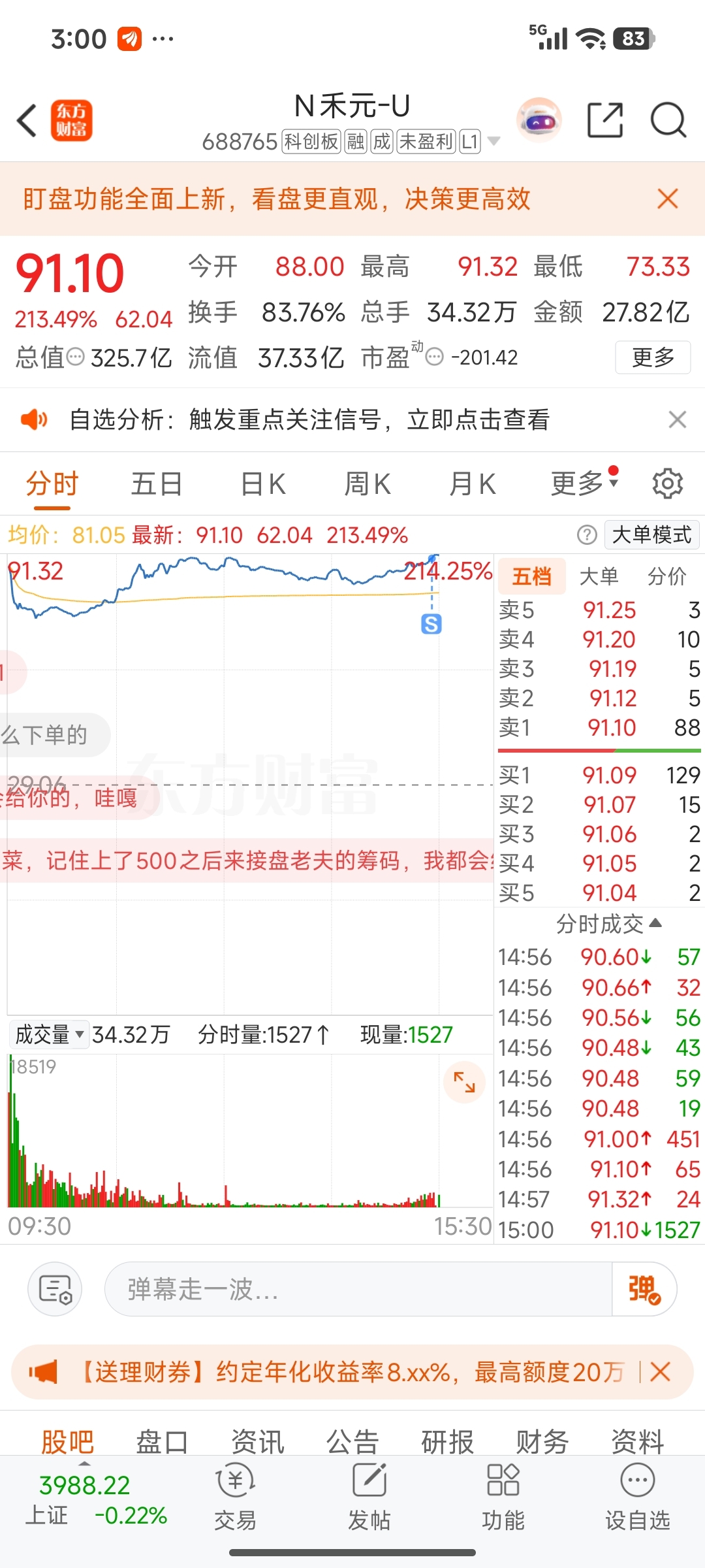$N禾元-U(SH688765)$ 卖了,留下的发财#收盘点评# 后期看到150