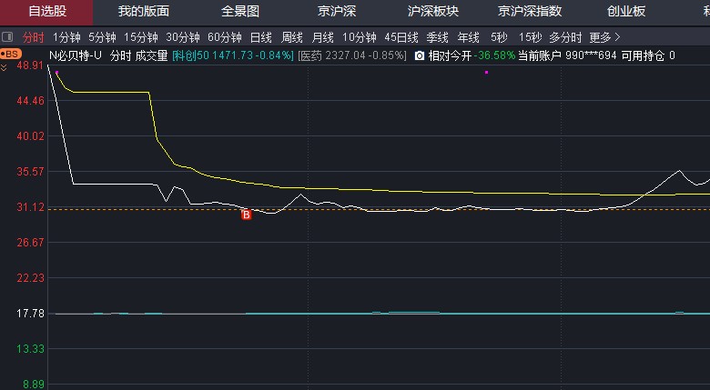 3选一,买了必贝特,几乎买在全天最低,但后面跌下来了,明天低开就亏钱,无奈!