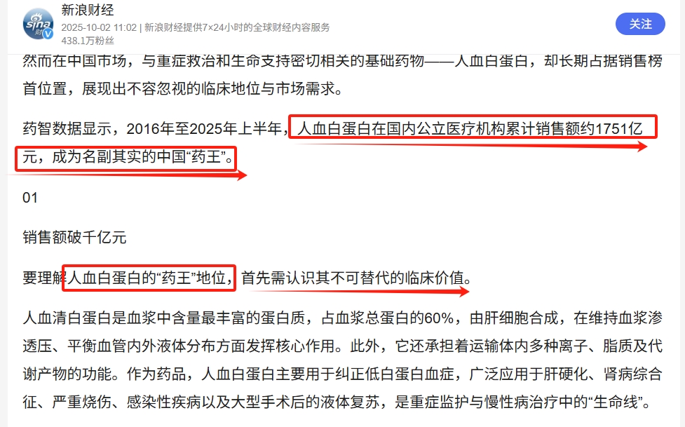人血清白蛋白!药王地位且供不应求(下图)长期被国外市场垄断。禾元生物,HY1001两年内无竞争对手,先发优势抢占市场。龙头地位凸显。