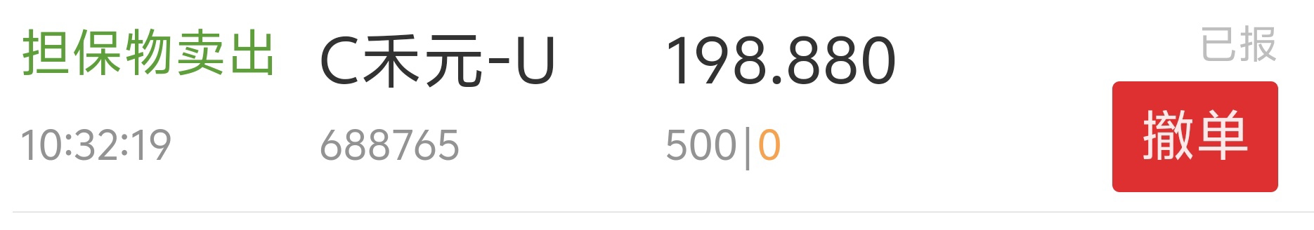 $C禾元-U(SH688765)$ 我挂单了,狙击