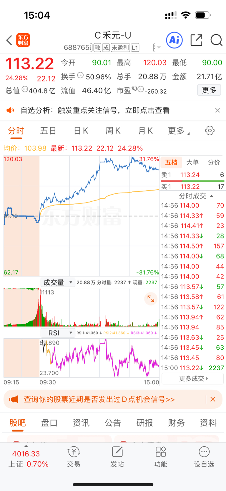 $C禾元-U(SH688765)$ 对子顶,88