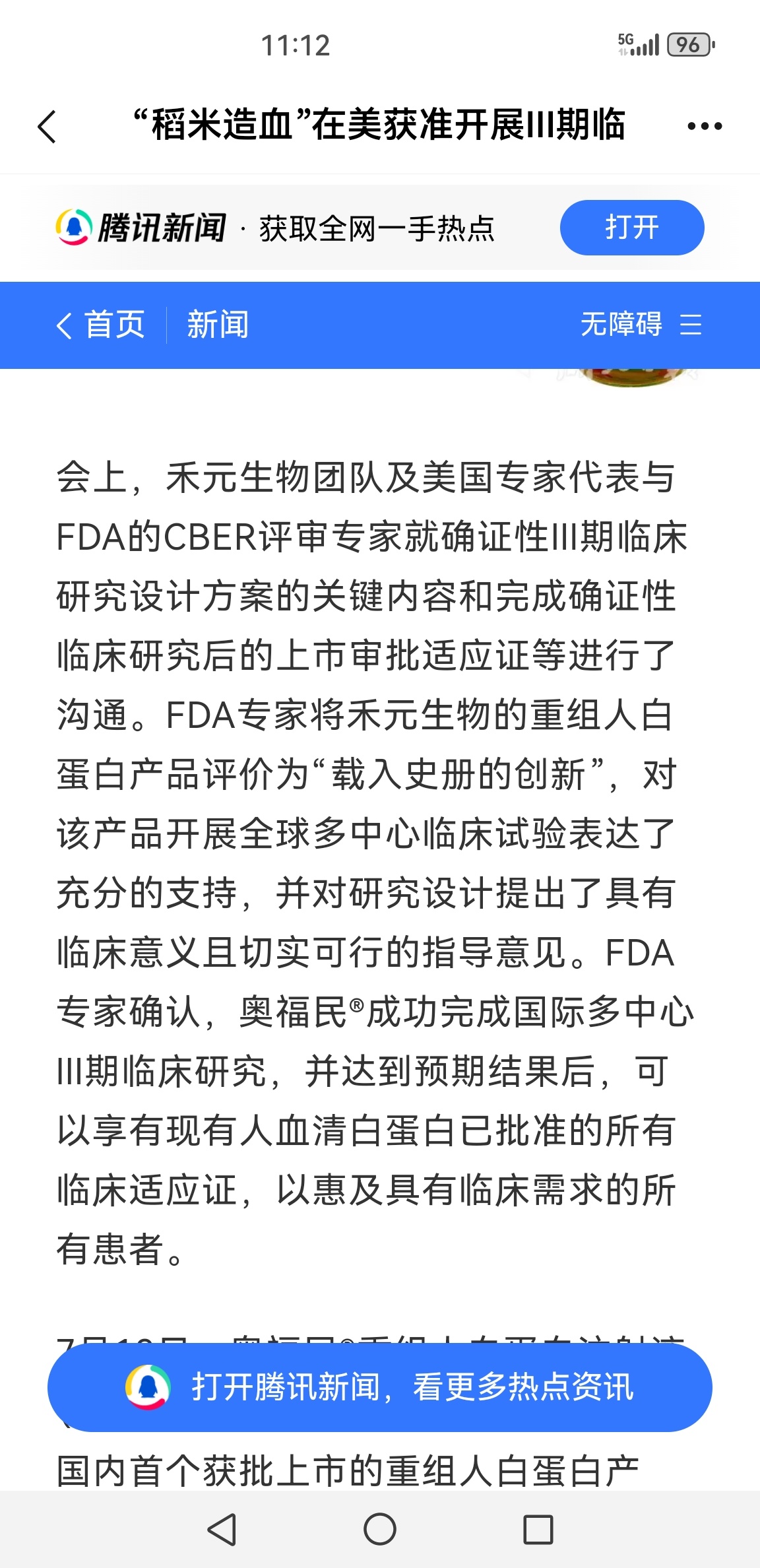 $C禾元-U(SH688765)$ 海外三期临床试验达标,美国FDA审批后,国内,美国,欧盟就能通过和人血白蛋白一样的全适应症,市场销售蓝海市场,美坐等海外BD首付款,里程款。