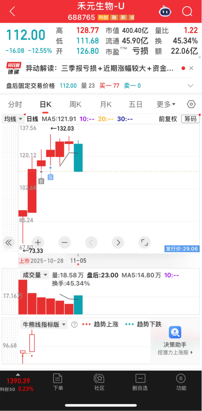 $禾元生物-U(SH688765)$ 终究还是阴了