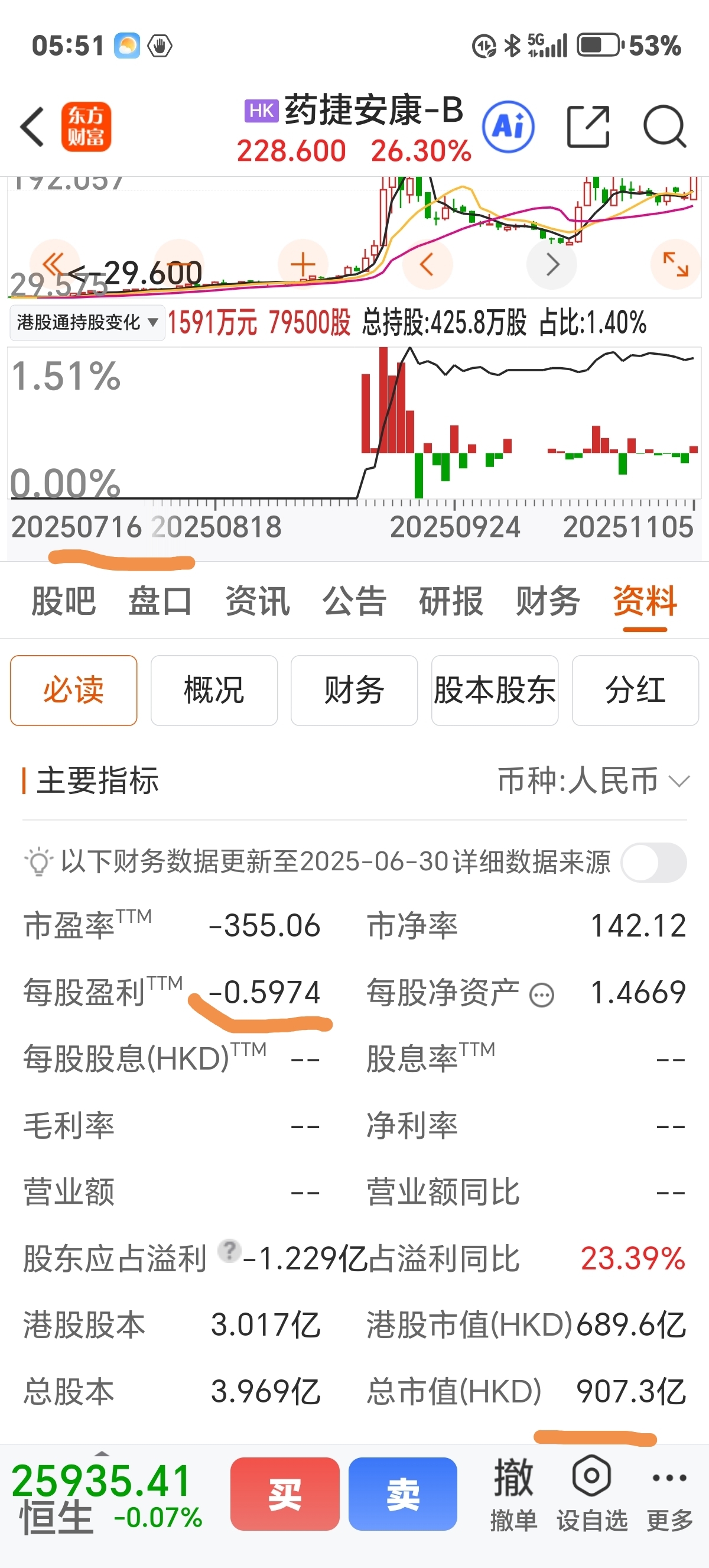 港股药捷安康七月16上市,开始股价三十以上若干天,市值今天九百多亿,亏损。昨天涨