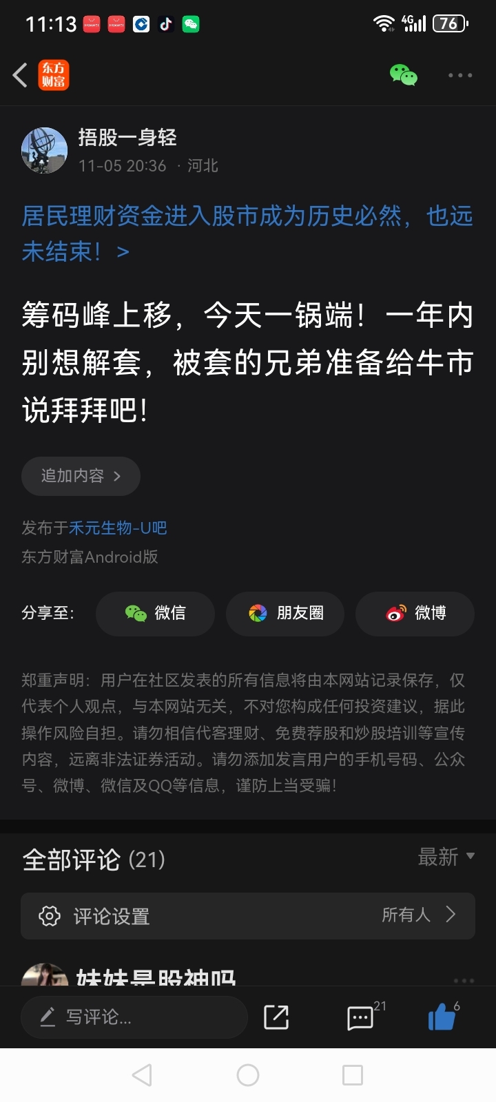 温馨提示: 1.根据《证券法》规定,禁止编造、传播虚假信息或者误导性信息,扰乱证券市场;2.用户在本社区发表的所有资料、言论等仅代表个人观点,与本网站立场无关,不对您构成任何投资建议。用户应基于自己的独立判断,自行决定证券投资并承担相应风险。《东方财富社区管理规定》