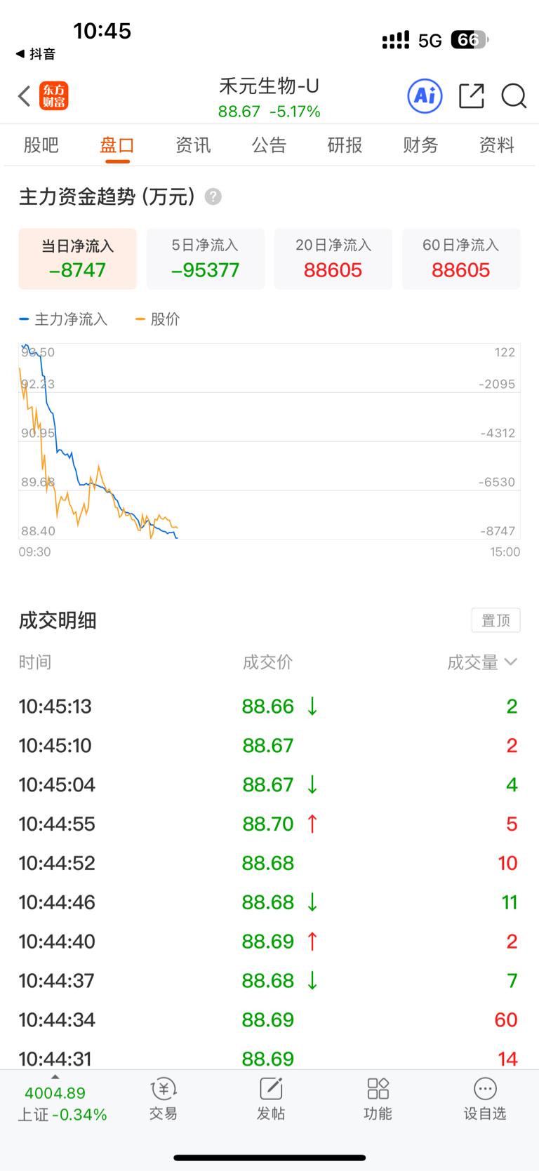 $禾元生物-U(SH688765)$ 一个亿能砸六个点 还有9个亿砸到50个点 40多左右