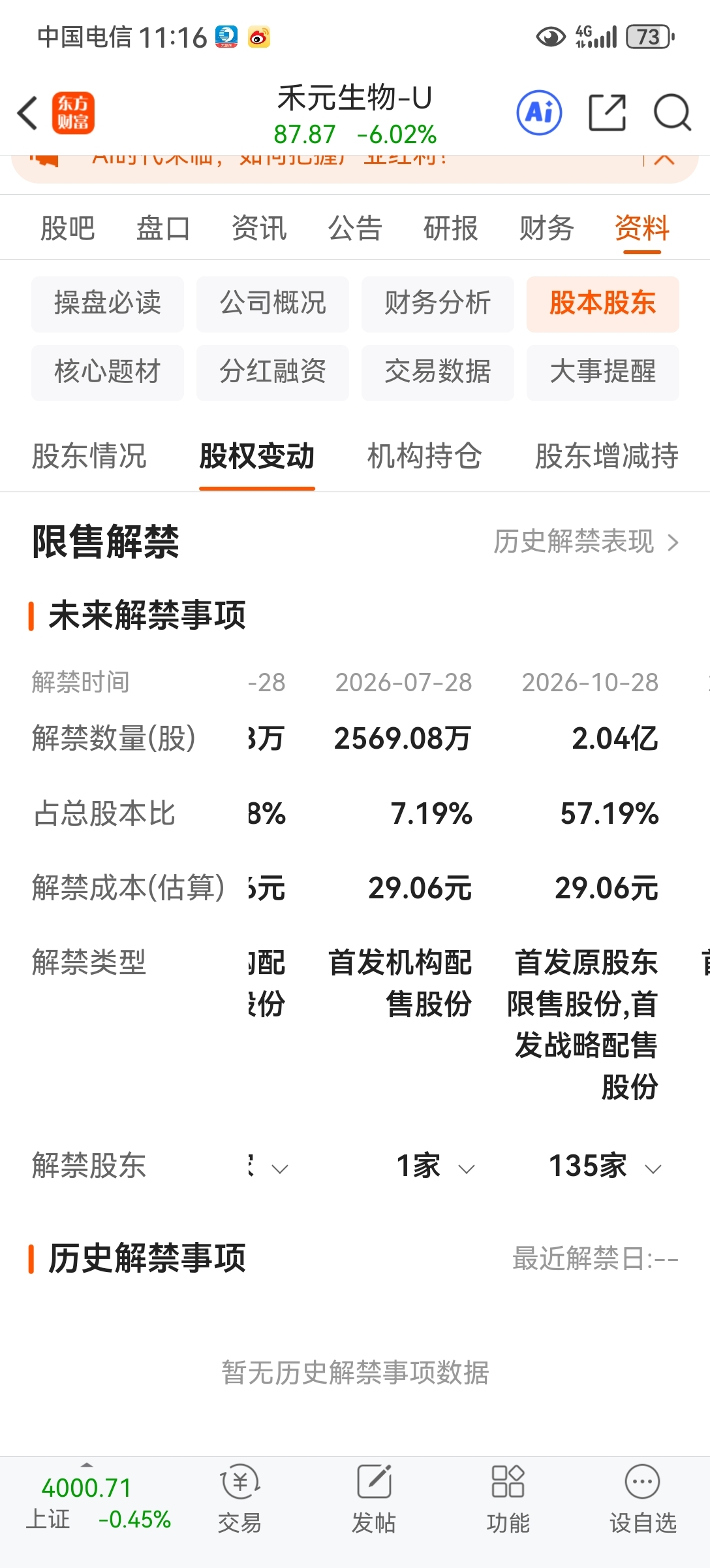 $禾元生物-U(SH688765)$ 不到一年时间内有近3亿股禁!!!!!