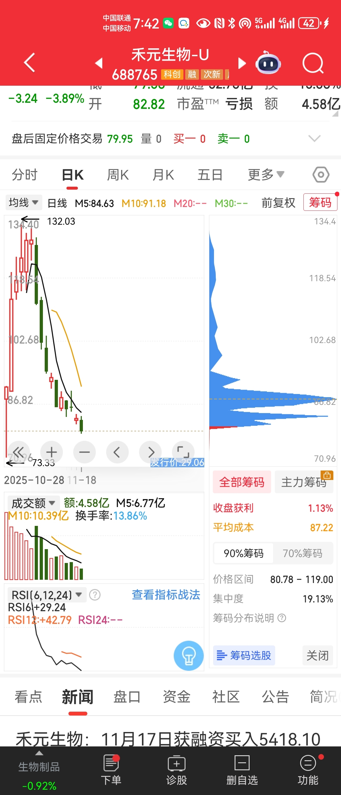 $禾元生物-U(SH688765)$ 目前获利盘只剩下1%,还能砸出多少筹码?再砸就是赔本赚吆喝了。