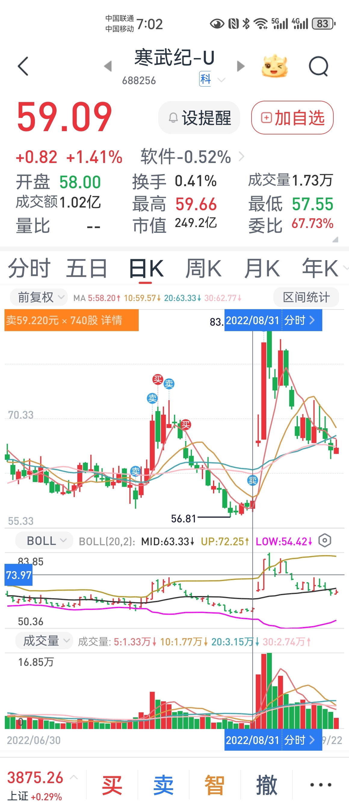 曾经持有寒多股,因为沃森生物暴跌被迫卖出尚有盈利的寒武纪,错过了寒武纪的大行情,