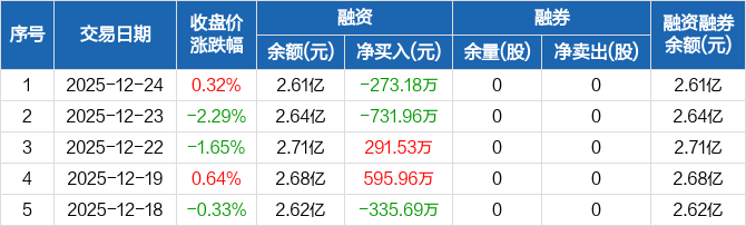 禾元生物:融资净偿还273.18万元,融资余额2.61亿元(12-24)
