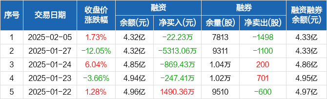普冉股份:连续4日融资净偿还累计6452.13万元(02-05)