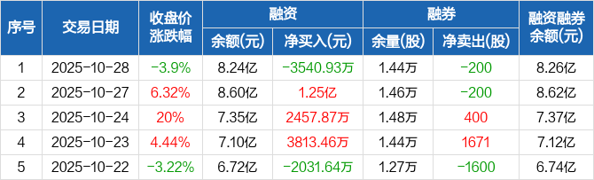 普冉股份:融资净偿还3540.93万元,融资余额8.24亿元(10-28)