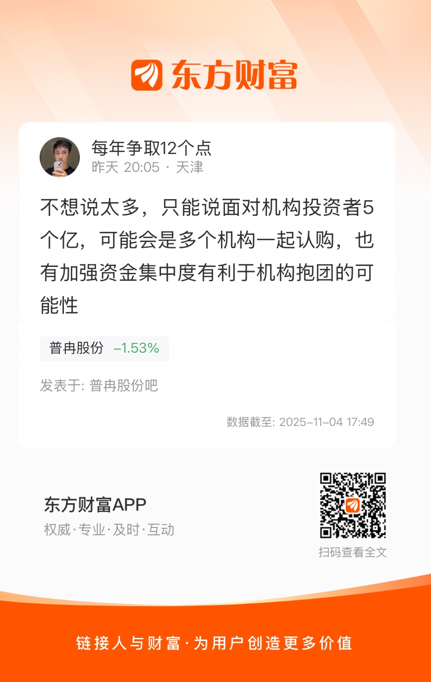 不想说太多,只能说面对机构投资者5个亿,可能会是多个机构一起认购,也有加强资金集中度有利于机构抱团的可能性