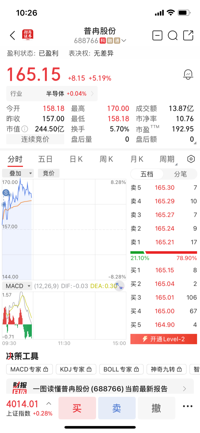 $普冉股份(SH688766)$ 今天164.6全卖了 卖飞了吗?