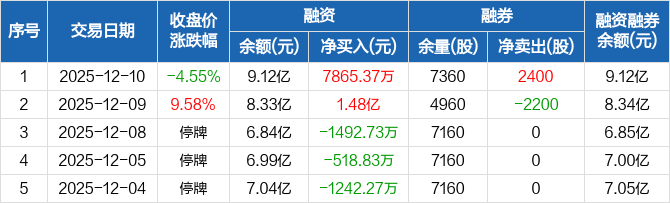 普冉股份:融资净买入7865.37万元,融资余额9.12亿元(12-10)