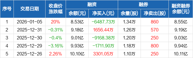 普冉股份:融资净偿还6487.73万元,融资余额8.53亿元(01-05)