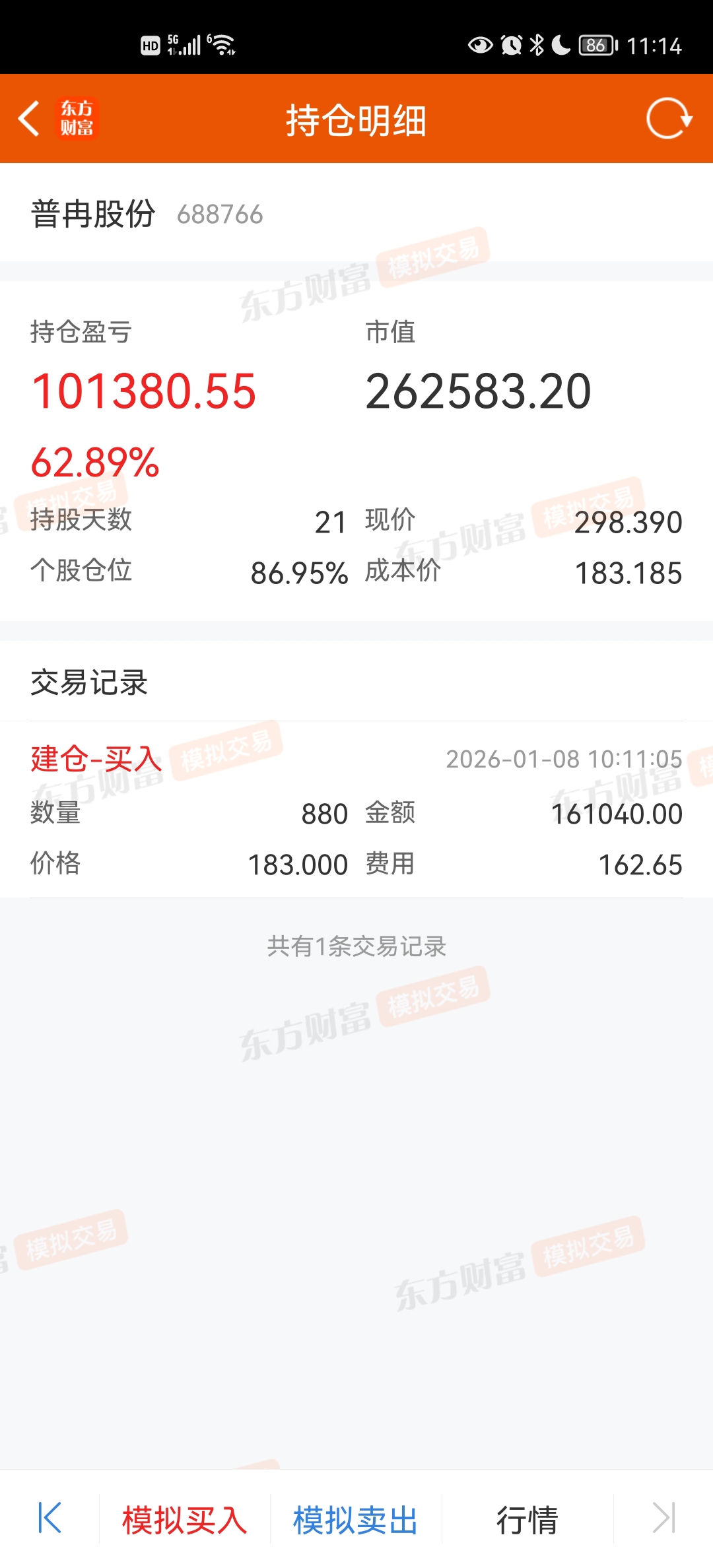 $普冉股份(SH688766)$ 这图爽吧,可惜是魔力炒股,我刚刚开户,买不到这只股票