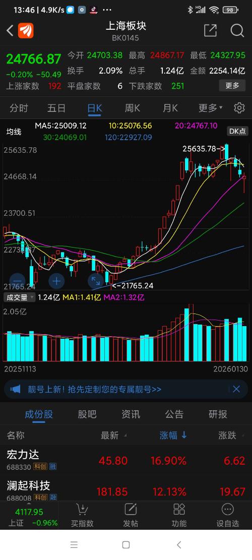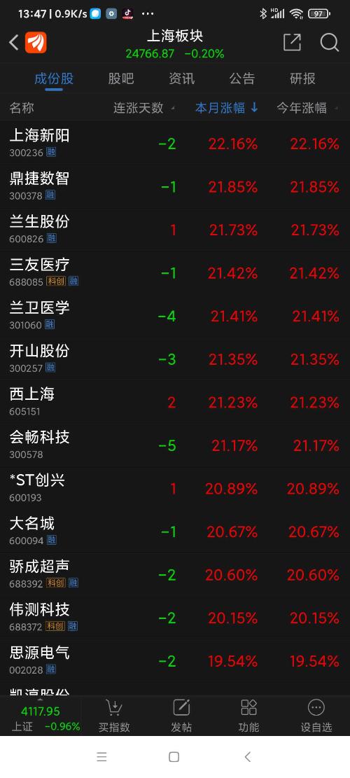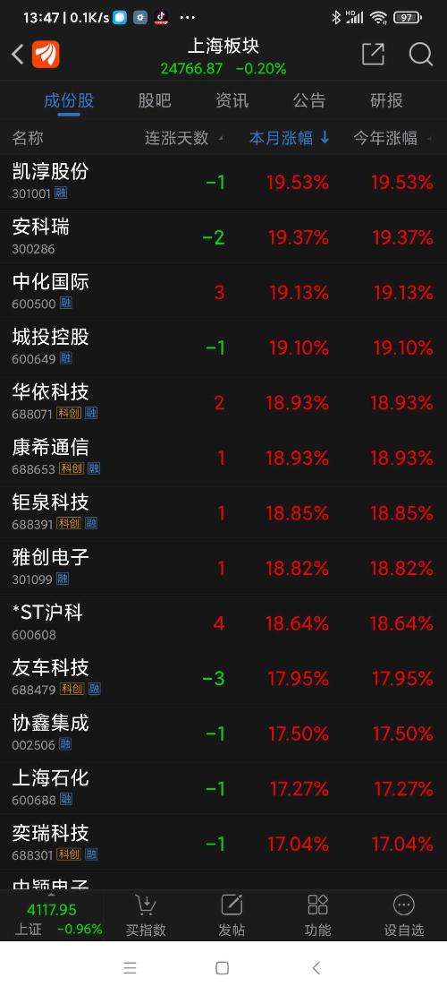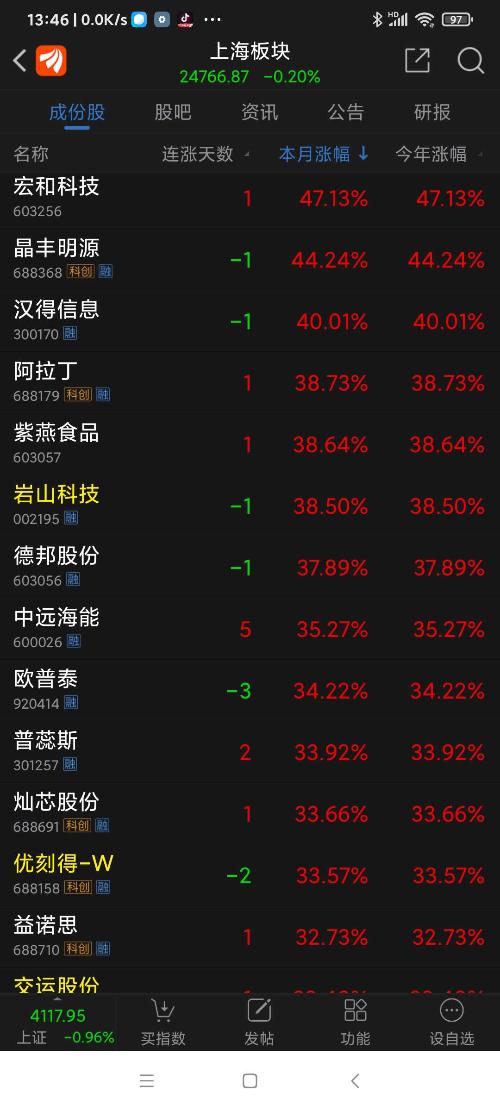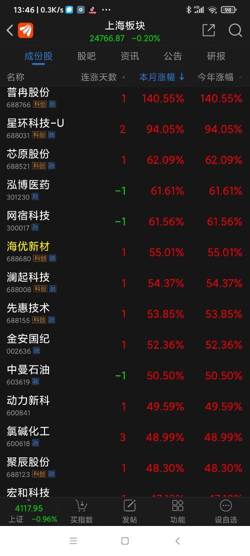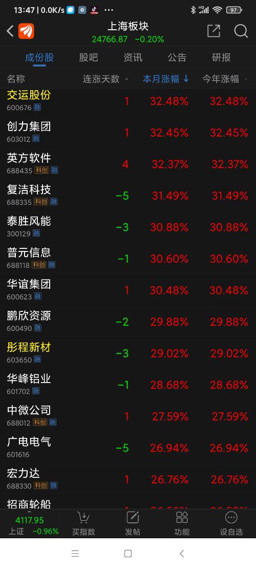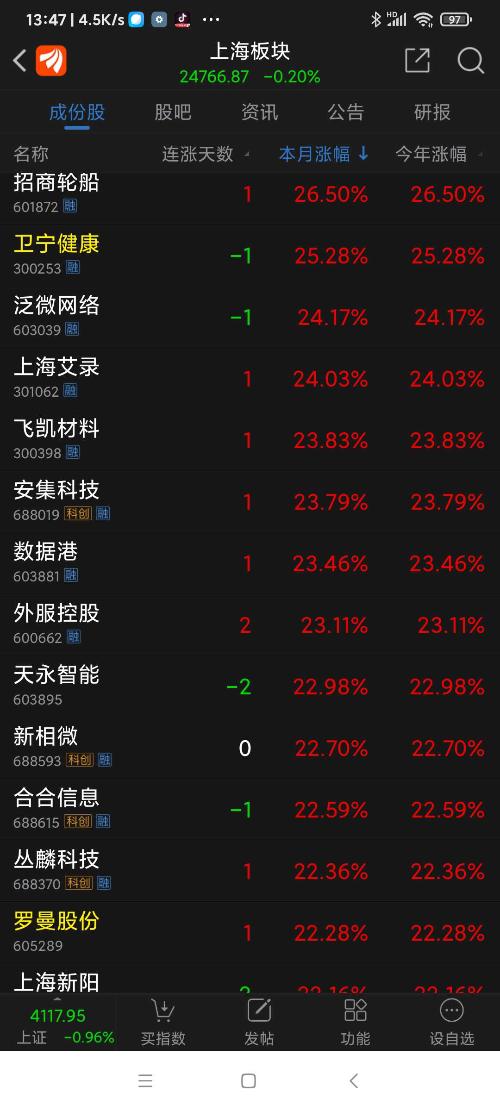 上海板块26年元月涨幅8.09%,普冉股份名列上海板块第一名。