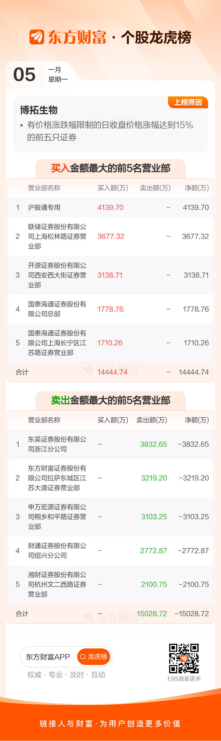 博拓生物(688767)龙虎榜数据(01-05)