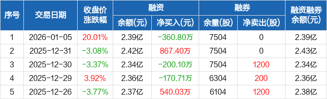 博拓生物:融资净偿还360.8万元,融资余额2.39亿元(01-05)