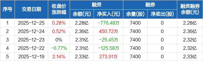 容知日新:融资净偿还776.48万元,融资余额2.28亿元(12-25)
