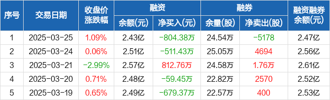 珠海冠宇:融资净偿还804.38万元,融资余额2.43亿元(03-25)