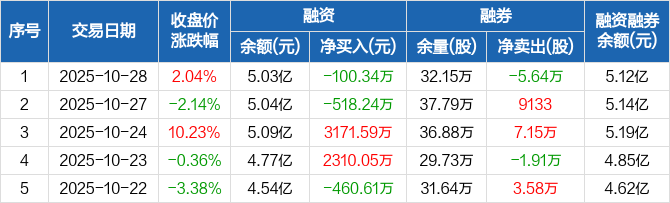 珠海冠宇:融资净偿还100.34万元,融资余额5.03亿元(10-28)