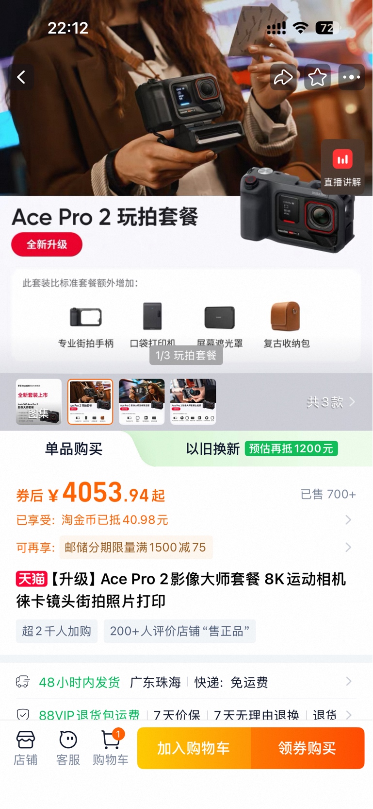 $影石创新(SH688775)$ 直播间卖的不错啊,新品上市2个多小时卖出700多台了