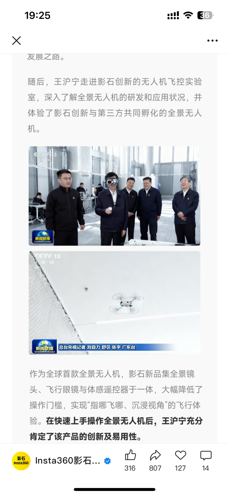 $影石创新(SH688775)$ 影石的无人机飞控实验室领导到访了,不知道咱有没有机会参观一下