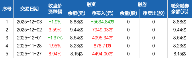 影石创新:融资净偿还5634.84万元,融资余额8.88亿元(12-03)