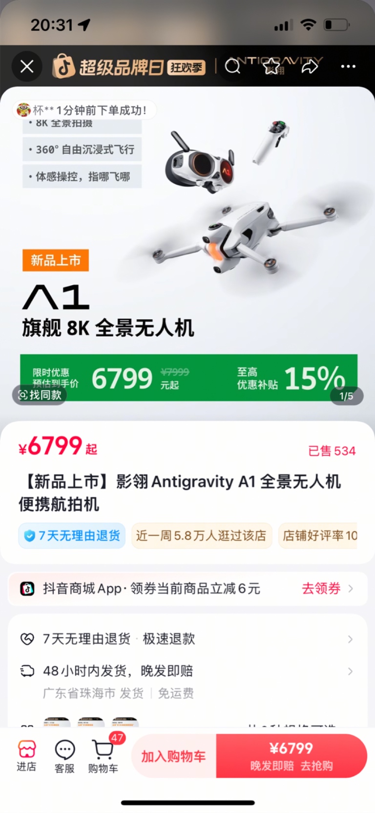 $影石创新(SH688775)$  明天不涨就退货。
