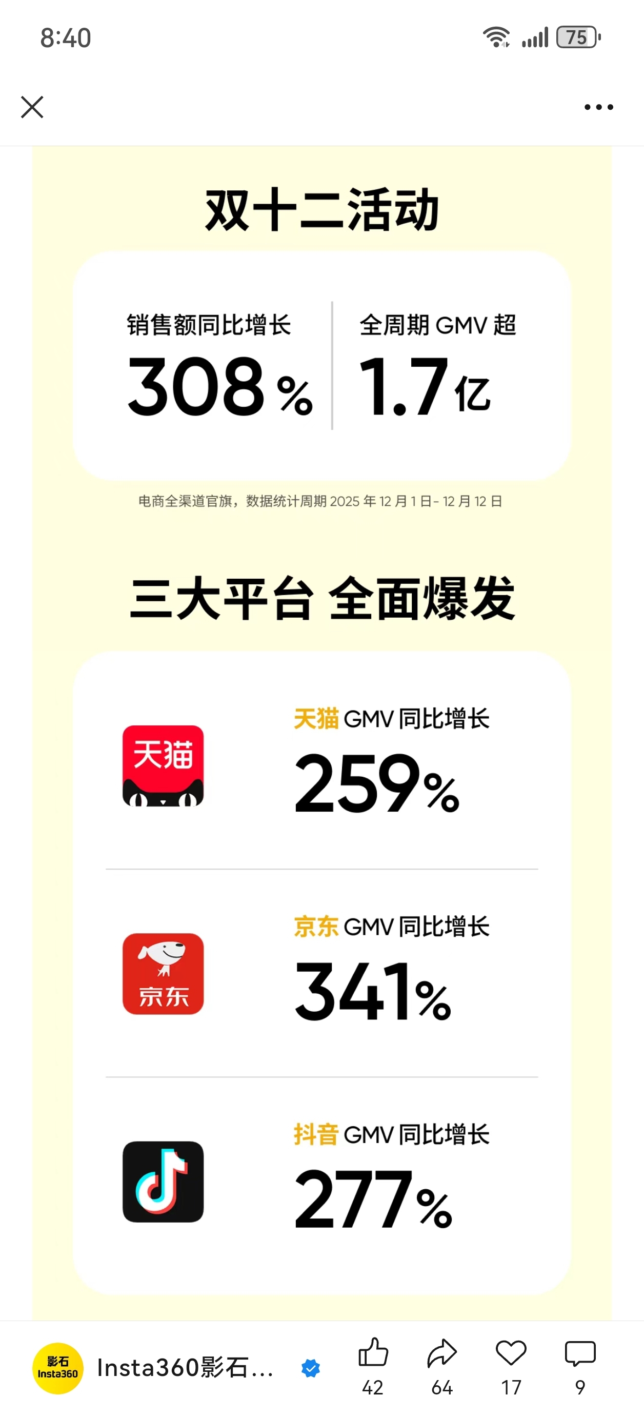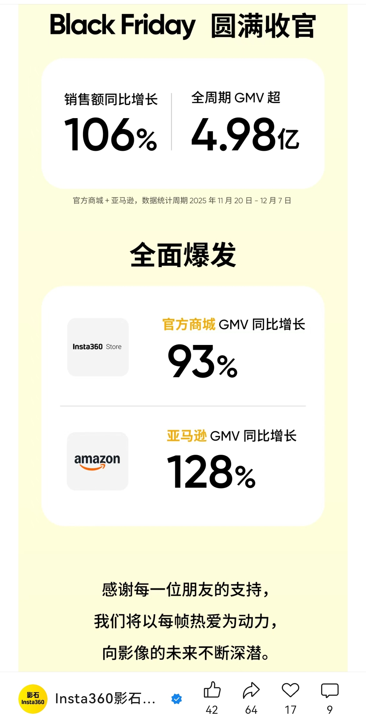 $影石创新(SH688775)$ 业绩是对市场质疑的最有力反击