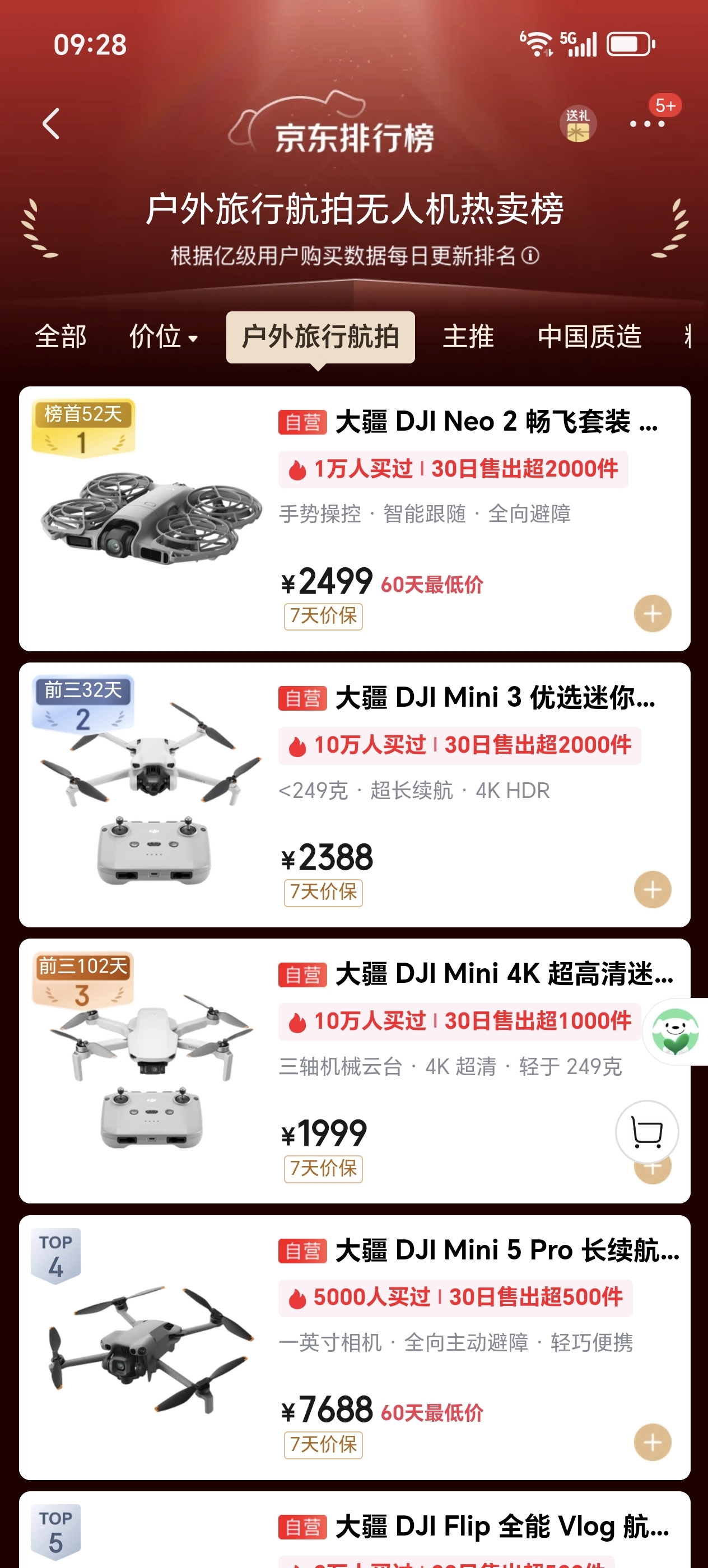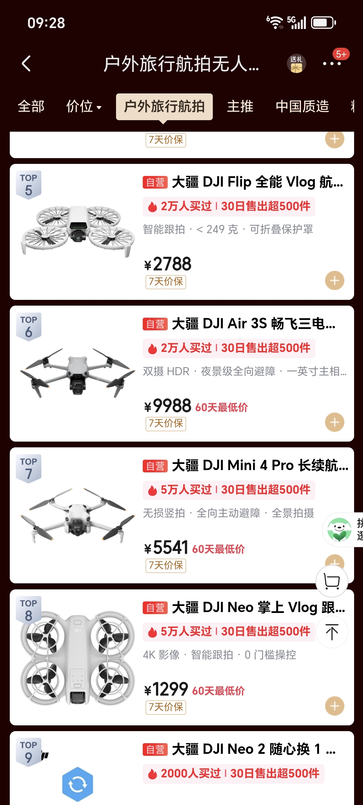 无人机我感觉卖的还可以,销量靠前的都是价格相对便宜的,到了6000元以上的价位,