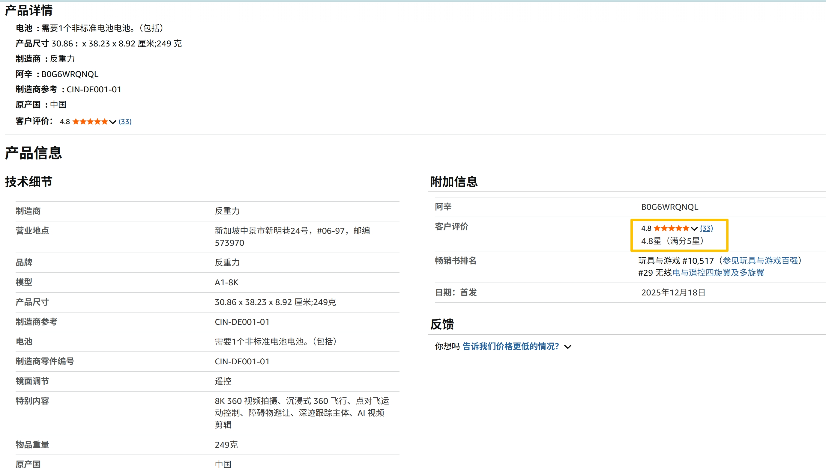 $影石创新(SH688775)$ 33个评价,4.8星,整体口碑很好了。