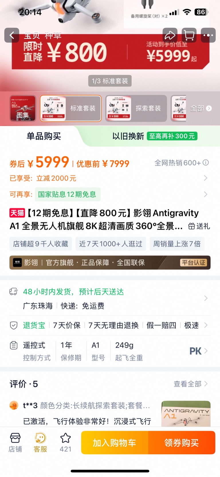 $影石创新(SH688775)$ 全网才卖了六百多台,就5条评论