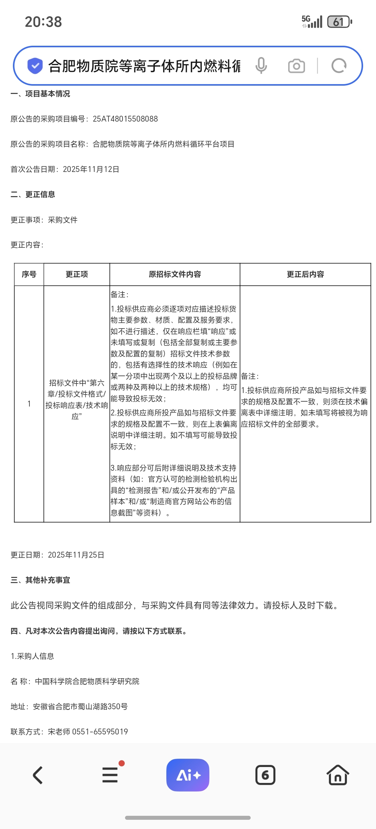 合肥物质院等离子体所的核聚变招标4个项目,目前还在招标答疑阶段,没有最终结果,按